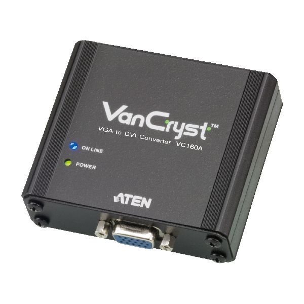 Der VC160A ist ein VGA-auf-DVI-Konverter, über den Sie das Bild Ihrer VGA-Signalquelle auf einem DVI-Bildschirm wiedergeben können. Er kann auf zwei Arten mit Strom versorgt werden: über den VGA-Port oder über ein Netzteil. Der VC160A ist kompakt, flexibel einsetzbar und einfach zu installieren - es ist keine Software erforderlich. Er unterstützt eine breite Palette Auflösungen, und macht so die Betrachtung hochqualitativer Bilder zum Vergnügen.