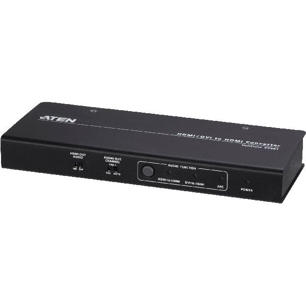 Der ATEN VC881 ist ein hochwertiger HDMI/DVI zu HDMI Konverter mit Audio De-Embedding Funktion. Wenn Sie ein DVI-Signal eingeben, wandelt es das Signal in ein HDMI-Signal um oder wenn Sie ein HDMI-Signal eingeben, wird das HDMI-Audiosignal extrahiert. Die erweiterte Videounterstützung bietet eine besser definierte Verbindung mit Videoauflösungen bis zu 4K und entspricht HDCP 1.4.Der VC881 bietet die Flexibilität, Signalschnittstellenkonvertierung (DVI zu HDMI) und HDMI Audio De-Embedding zu unterstützen. Für die HDMI Audio De-Embedding Funktion teilt der VC881 das Audio von HDMI-Video auf und konvertiert es in S/PDIF, Koaxial oder ein RCA Stereo Audiosignal, um ein Audiosystem zu unterstützen, das vom Bildschirm getrennt ist. Dadurch kann HDMI-Video auf dem Bildschirm fortgesetzt werden, während gleichzeitig Audio an ein Audiosystem in der Nähe der HDMI-Quelle geliefert wird. Darüber hinaus unterstützt der VC881 ARC, um die Einstellung zu vereinfachen, indem er keine separate S/PDIF-Audioverbindung benötigt.Das kompakte Gehäusedesign und die Audio De-Embedding Funktion machen den VC881 ideal für Bars, öffentliche Verkehrsstationen und Heimkinos.