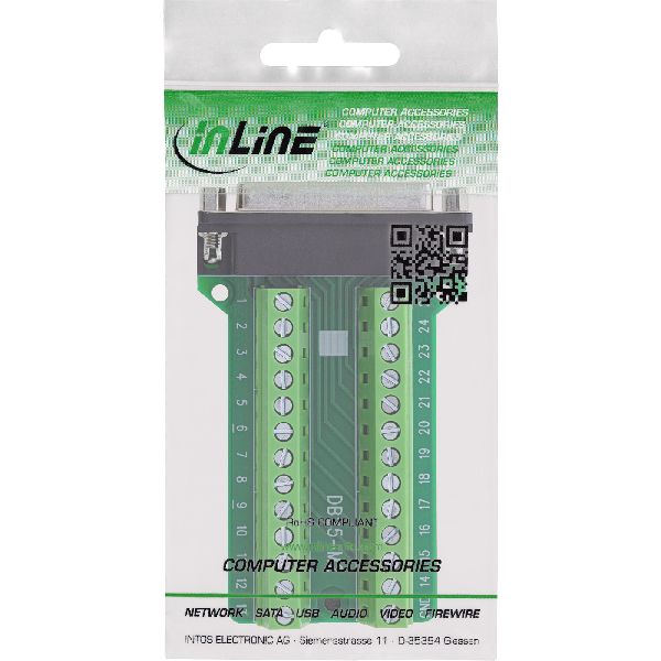 Weiterführende Links zu "InLine® D-Sub 25 Terminalblock, Buchse, 2-reihig, Schraubklemme 92502E"