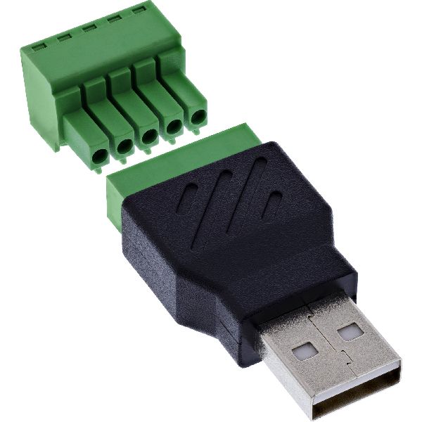 Der InLine® USB?A Terminalblock?Adapter bietet eine praktische Lösung, um USB?2.0?Signale ohne Löten oder Kabelverbindung auf eine 5?polige Klemmleiste zu übertragen. Typische Anwendungen finden sich im Bereich Service, Testaufbauten, Entwicklung oder Prototyping.