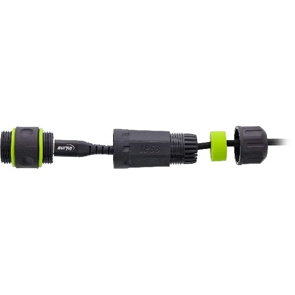 Dank M20-Gewinde lässt sich die Kupplung in Verteilerboxen oder Gehäusen integrieren. Die beiliegende Silikondichtung sorgt für eine sichere Führung von Kabeln mit Durchmessern zwischen 1,5 und 4,5 mm, 4,5 und 7,5 mm. Die Montage erfolgt schnell und werkzeuglos durch einfaches Verschrauben.