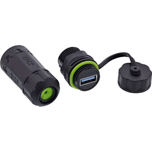 Die Montage erfolgt werkzeuglos durch das integrierte Schraubsystem. Dank M20-Gewinde lässt sich die Kupplung schnell und sicher in Gehäusen oder Anschlussboxen befestigen. Der grüne Dichtring und die Gummidichtung gewährleisten eine zuverlässige Abdichtung auch bei wiederholter Nutzung.