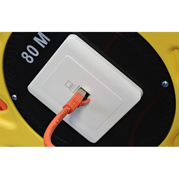 - Hohe Mobilität bei temporären Netzwerkinstallationen: Die robuste Kabeltrommel mit 80 m Cat.7 S/FTP-Verlegekabel ermöglicht flexible, sichere Ethernet-Verbindungen in wechselnden Einsatzumgebungen.