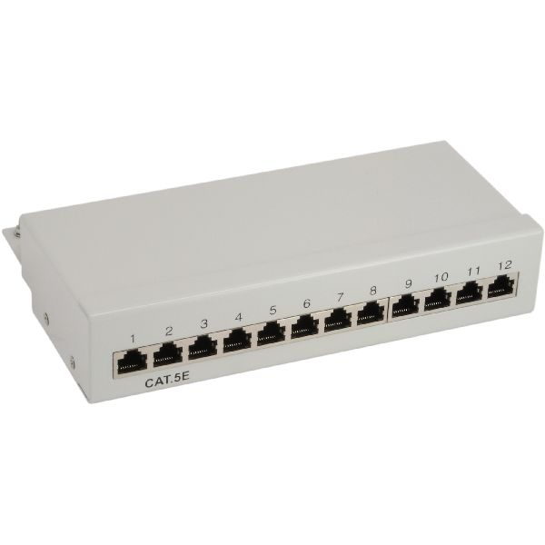 InLine® Patchfeld Cat.5e 12-fach, Tisch/Wand-Montage, lichtgrau, RAL7035 74213