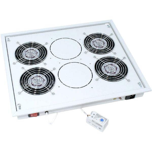 Diese Belüftungseinheiten wurden speziell für Standverteiler konstruiert. Sie werden je nach Bedarf in Dach oder Boden des Verteilers montiert, je nach Typ von außen oder innen. Eine Ausnahme bildet die Tangentialbelüftung für den Octagon, die an den Ecken des Verteilers montiert wird. Für den Einbau in die Standard 19-Montageleisten sind die 19-Belüftungseinheiten bestimmt. !!! Die neue Belüftungseinheit für die Standverteiler wird von außen montiert !!! Sofern kein Sockel für den Verteiler eingesetzt wird, muß für die Installation im Boden der Montagerahmen für die Belüftungseinheit RAX-CHx-X1 Serie verwendet werden. mit 4x Lüfter je 160m³/h 240V, 50/60Hz und Thermostat