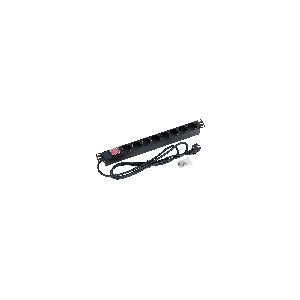 19" (48,3cm) Steckdosenleiste 1 HE, 8-fach laut DIN-Norm, max. 16A, Kabel 3x1,5mm², 2m + Universalstecker Schutzkontakt max. 16A, beleuchteter Ein-/Ausschalter mit Abdeckung, RAL 9005 schwarz, Beipack: Schrauben M6x16 mit Unterlegscheibe (2x), Käfigmutter M6 (2x)