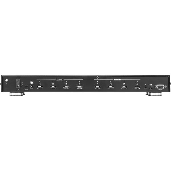 Der VM0404HA Matrix Switch bietet eine einfache und günstige Möglichkeit zur Weiterleitung von 4 HDMI Videoquellen an 4 HDMI Monitore und kann über Tasten an der Vorderseite, IR Fernbedienung und RS-232 Steuerung bedient werden, was eine optimale Anzeige und Steuerung von hochauflösendem Video gewährleistet.