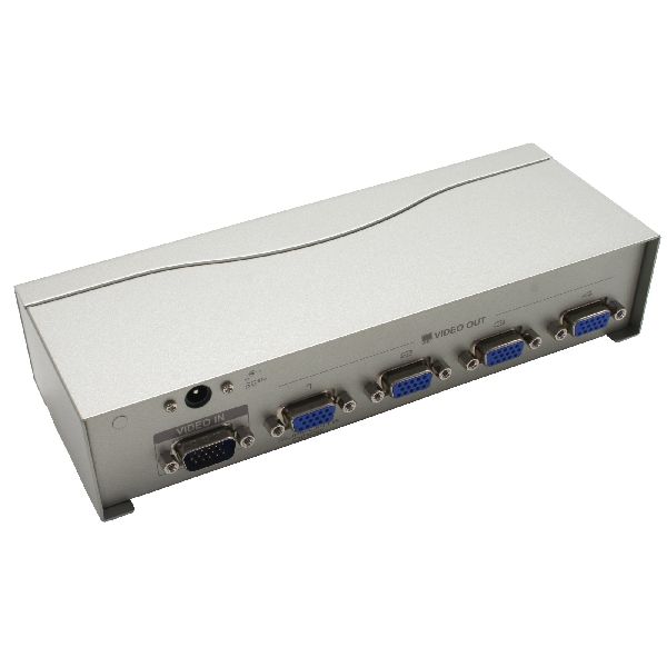 Der VS94A ist ein Grafik-Splitter, der nicht nur das VGA-, XGA-, SVGA-, UXGA-, oder Multisync-Grafiksignal vervierfacht, sondern das Signal auch noch so verstärkt, dass es über Entfernungen von bis zu 65 m übertragen werden kann. Er lässt sich in Reihe schalten, sodass bis zu 64 Bildschirme angeschlossen werden können und unterstützt eine Bandbreite von bis zu 350 MHz. Somit eignet sich der VS94A optimal zur Übertragung von Information an die Öffentlichkeit, zur Überwachung des Arbeitsumfeldes von einem sicheren Ort aus oder zur Übertragung hochqualitativer Bildsignale für das Mitarbeitertraining oder sonstige Schulungen.