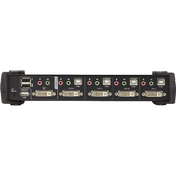 - DVI-KVMP-Switch mit 4 Ports, USB 2.0-Unterstützung und 2.1-Kanal-Surround-Sound-Übertragung