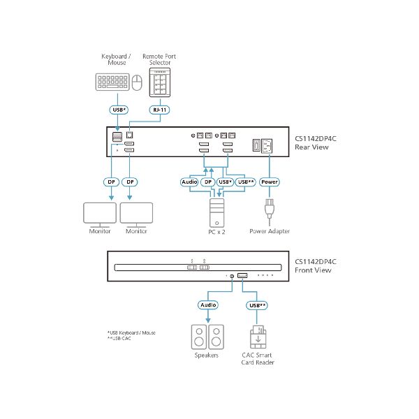 Weiterführende Links zu "ATEN CS1142DP4C 2-Port KVM Secure Switch mit USB 4K DisplayPort Dual-Display 61615B"
