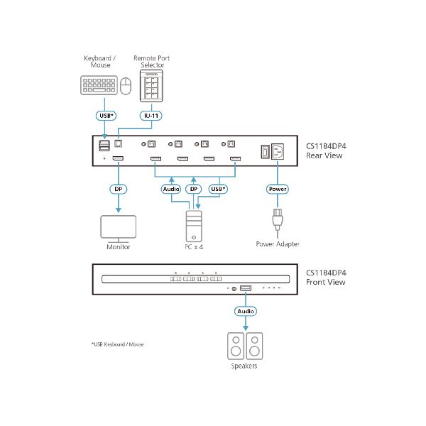 Weiterführende Links zu "ATEN CS1184D4C 4-Port KVM Secure Switch mit USB 4K DVI (PSD PP v4.0-konform) 61615G"