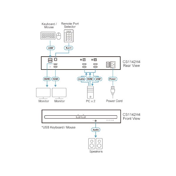 Weiterführende Links zu "ATEN CS1142H4 2-Port KVM Secure Switch mit USB 4K HDMI Dual-Display (PSD PPv4.0) 61615T"