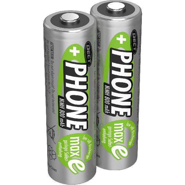 Super Power NiMH-Akku mit 800mAh! Im 2er Blister. NiMH-Akkus sind überall einsetzbar, wo Einwegbatterien zu hohe Kosten verursachen, die Umwelt zusätzlich belasten und nur eine unzureichende Leistung/Ausdauer zur Verfügung stellen. NiMH-Akkus lassen sich idealer Weise in elektronischen Kleingeräten wie Discman, Phonogeräten, Taschenlampen, Fernbedienungen usw. einsetzen. Die "Phone DECT" Reihe ist speziell für Mobile Haustelefone gedacht.