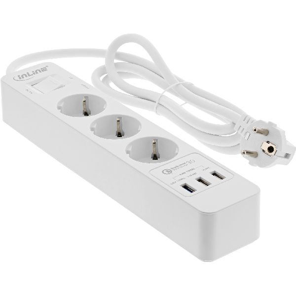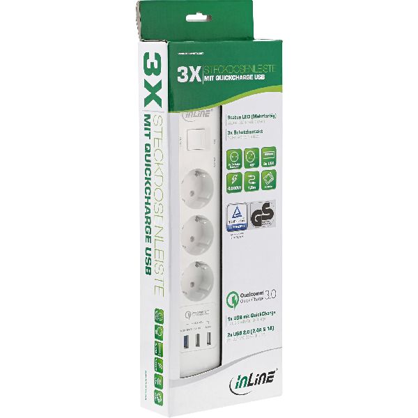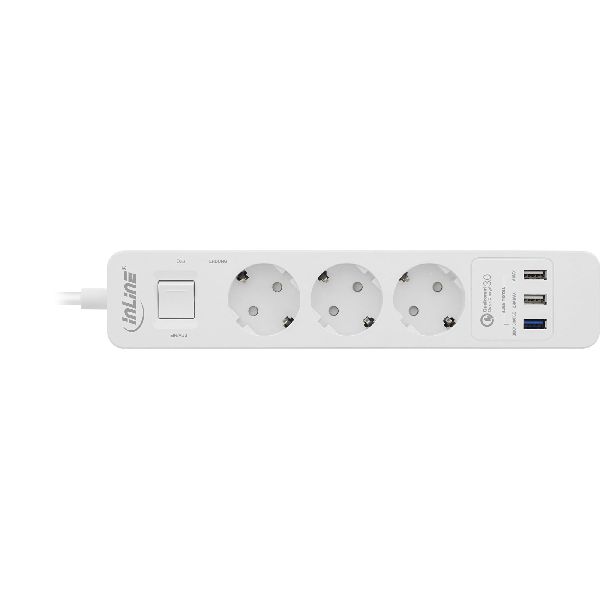 Weiterführende Links zu "InLine® Steckdosenleiste, 3-fach Schutzkontakt, ÜSS und QC3.0, weiß 16491"
