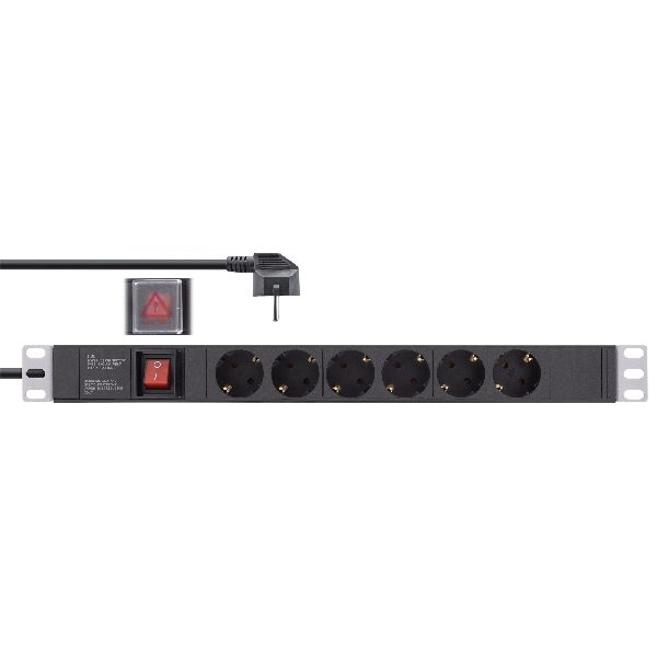 Steckdosenleiste mit 6 Steckdosen zum Einbau in den 19" Netzwerkschrank