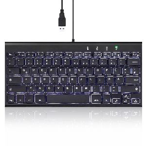 Deutsches Tastaturlayout (QWERTZ)Kompaktes Design - Mini Tastatur Design ohne Ziffernblock, welches Platz auf dem Schreibtisch spart und komfortabel ist Tippen Bei Tag Und Nacht - Einfaches Tippen im Dämmerlicht oder dunklen Umgebung mit LED Hintergrundbeleuchtung Praktische Hot Keys - Einfaches Navigieren mit den 10 intuitiven Hot Keys auf einer kompakten Tastatur Leise Scherentastenstruktur - Komfortable und stabile Tasten mit flachem Profil ähnlich wie bei Laptoptasten. Die Scherenstrukturtasten bieten ein ebenes Tastengefühl beim Tippen. Abmessungen 282 x 135 x 14 mm Gewicht 335 g Hintergrundbeleuchtung Ja Kabellänge 180 cm Schnittstelle USB Farbe schwarz Mediatasten 10 Systemvoraussetzung Windows 7/8/10/11 Betriebstemperatur 0 bis 40°C Lagertemperatur -15 bis 60°C Stromverbrauch < 100~350mA (Hintergrundbeleuchtung aus~ein) USB Betriebsspannung 4,25~5,25 VDC Werkstoff ABS Tastenfahrweg 2,0+0,32 mm