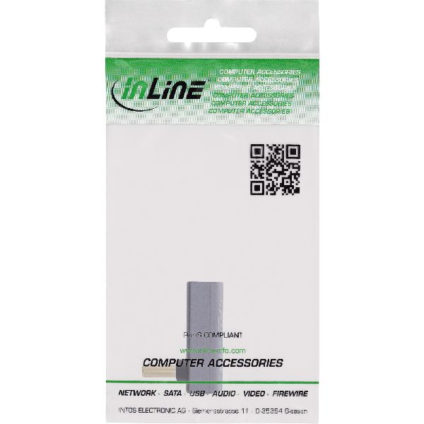 Der InLine® USB4 Adapter mit USB-C Stecker auf USB-C Buchse in oben/unten gewinkelter Ausführung kombiniert hohe Leistungsfähigkeit mit funktionalem Design. Die vertikale Winkelung ermöglicht eine besonders platzsparende Kabelführung – optimal für Anschlüsse, die sich an der Ober- oder Unterseite von Geräten befinden.