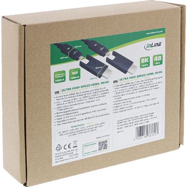 Die hybrid ausgelegte Konstruktion aus Glasfaser und Kupfer, kombiniert mit Aramid-Schutzgeflecht und vergoldeten Kontakten, sorgt für maximale Robustheit, Langlebigkeit und minimale Signalstörungen. Die HDMI-A- und HDMI-D-Stecker lassen sich werkzeuglos abnehmen, was eine besonders einfache Verlegung in engen Installationsumgebungen ermöglicht – perfekt für Kabelkanäle, Schränke und Unterputzlösungen.