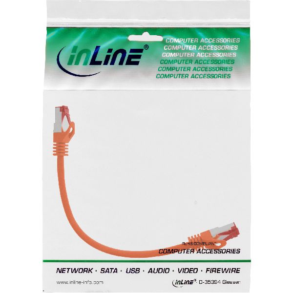 Produktinformationen "InLine® Patchkabel, S/FTP (PiMf), Cat.6, 250MHz, PVC, Kupfer, orange, 0,3m 76433O"