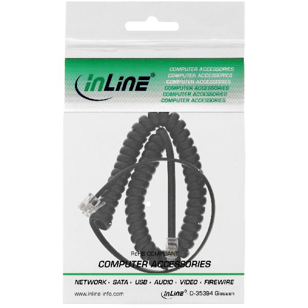 Weiterführende Links zu "InLine® Hörer Spiralkabel, RJ10 Stecker / Stecker, schwarz, max. 4m 18895I"