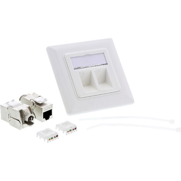 Weiterführende Links zu "InLine® Cat.6A Anschlussdose, Unterputz, 2x Keystone RJ45 Buchse, weiß RAL9010 76832A"