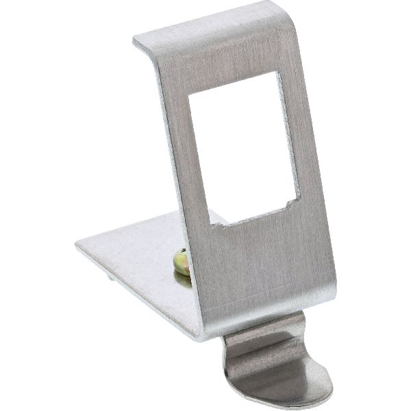 Diese Halterung kann an einer Hutschiene befestigt werden. Durch die standardisierten Abmessungen ist sie zur einfachen Snap-In Montage von einem Keystone Modul geeignet.