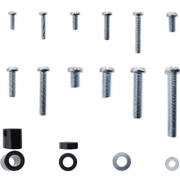 - Kreuzschlitz-Schrauben: 4x M4x12mm, 4x M4x20mm, 4x M5x12mm, 4x M5x20mm, 4x M5x30mm, 4x M6x12mm, 4x M6x20mm, 4x M6x35mm, 4x M8x12mm, 4x M8x20mm, 4x M8x35mm, 4x M8x50mm