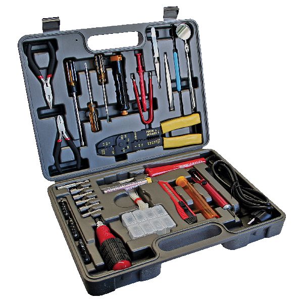 Dieser Werkzeugkoffer ist ideal für den Computer- oder Elektronikheimwerker. Er umfasst alle die am häufigsten zu Reparatur- oder Wartungsarbeiten am Computer, TV oder Radio, benötigten Geräte. Das Werkzeugset für Computer und Elektronik beseht aus: