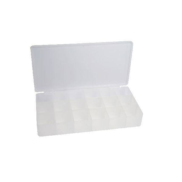 Die InLine® Kleinteilebox ist eine praktische Lösung zur Aufbewahrung von Kleinteilen. Sie verfügt über 18 Fächer und misst 213x114x35mm. Ausgestattet mit einem Klipp-Deckel, sichert sie den Inhalt zuverlässig und ist ideal für eine übersichtliche Sortierung.