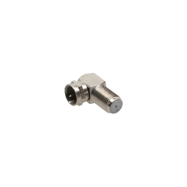 Dieser SAT-Antennenadapter aus Metall ermöglicht den einfachen Anschluss eines SAT-Antennenkabels an einen Receiver, auch wenn dieser aufgrund seines 90°-Winkels nahe an der Wand positioniert ist.