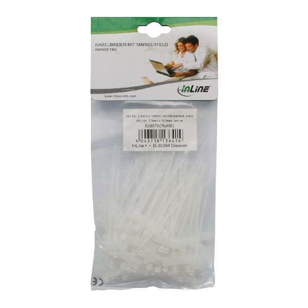 Produktinformationen "InLine® Kabelbin., Länge 100mm, Breite 2,5mm, Markierfeld quer 8x24mm,100er Pack 59967A"