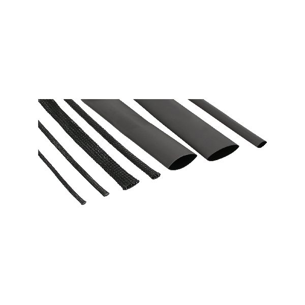 Das Kabelschlauch Set besteht aus 4 verschiedenen Kunststoff-Gewebemänteln, Kabelbindern und 3 Größen Schrumpfschlauch. Das Set beinhaltet: