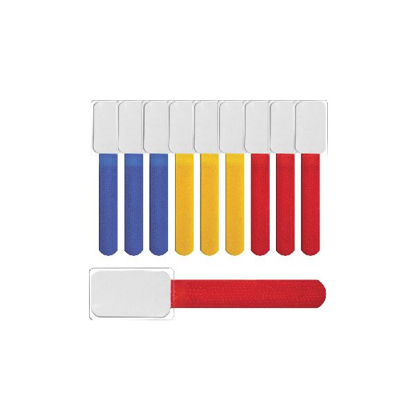 WIEDERVERWENDBAR: Dank Klettverschluss lassen sich die Etiketten schnell anbringen,entfernen und neu positionieren - flexibel und nachhaltig im Vergleich zu Einweg-Etiketten, die Kleberückstände hinterlassen.