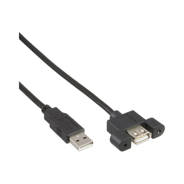 InLine USB 2.0 Anschlusskabel Stecker A auf Einbaubuchse A. Externes Verlängerungskabel mit Befestigungsmöglichkeit. 2 Schrauben mit Gewinde #4-40 und Gewindelänge 8mm liegen dem Kabel bei