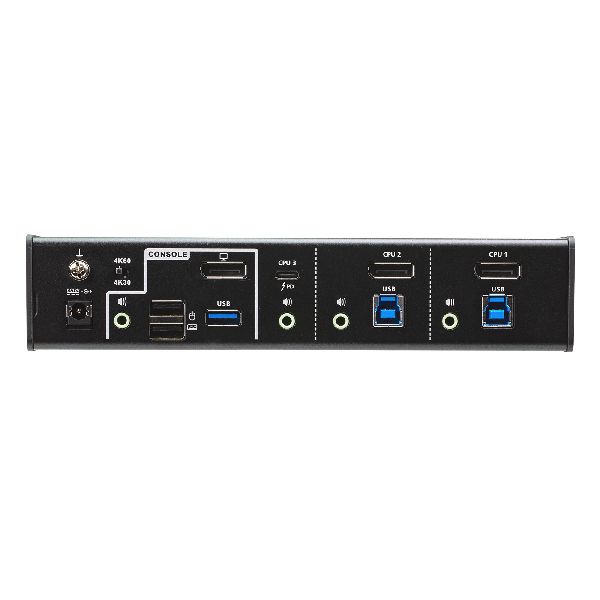 KVM- (Computer) Ports | CPU1 und CPU2: 2 x USB3.1 Gen1 Typ-B-Buchse (Blau) 2 x DisplayPort Buchse (Schwarz) 2 x 3,5-mm-Audiobuchse (Grün) CPU3: 1 x USB Typ-C-Buchse (Schwarz) 1 x 3,5-mm-Audiobuchse (Grün) |
