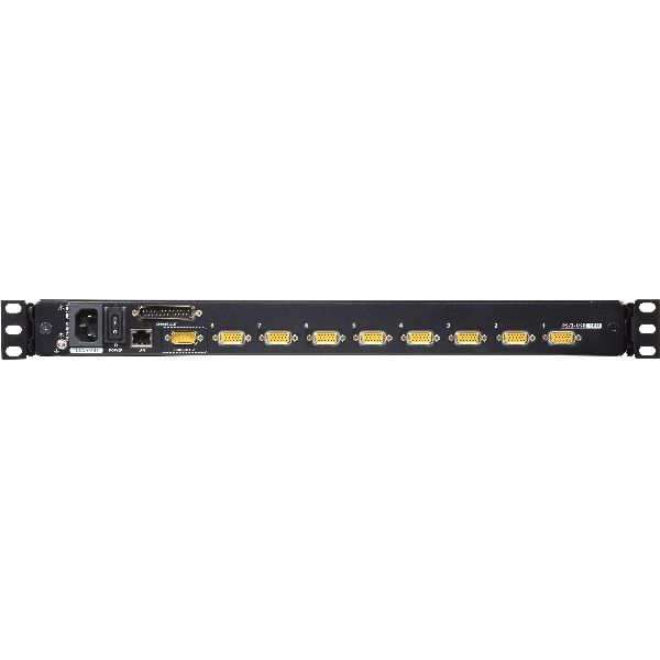 - Platzsparende Technologie – bis zu zwei Konsolen (ein Bus) steuern bis zu 8 Computer