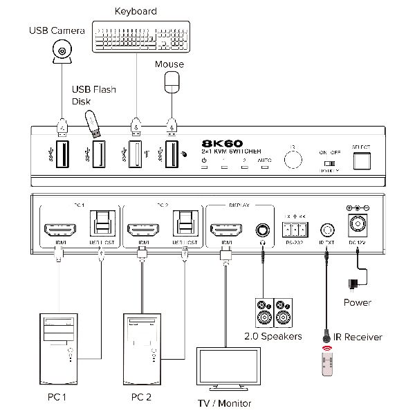 - Vielseitige Steueroptionen: Umschalten per Taste, Hotkey, IR-Fernbedienung oder RS-232 – volle Kontrolle in jeder Umgebung.