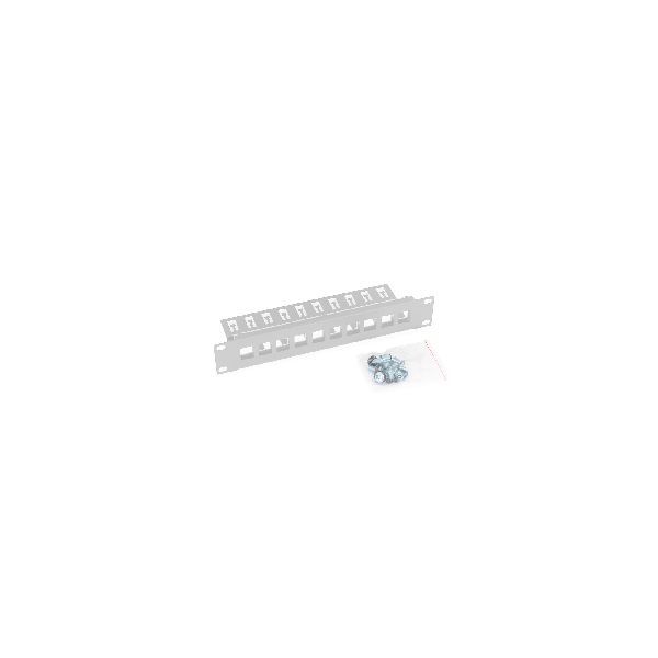 Modulares 10"-Patchpanel mit einer Höhe von 1 HE für max. 10 Keystone-Module.Beipack: