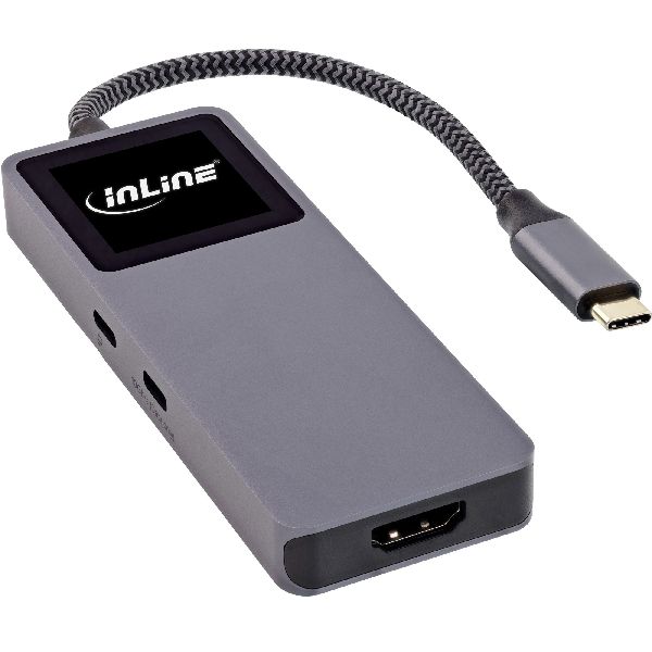 Ein besonderes Highlight ist das integrierte Display: Es zeigt in Echtzeit Statusinformationen wie aktive Ports, Datenraten, Monitoranschlüsse oder Ladeleistung an. Über die Taste können die Anzeigen bequem durchgeschaltet und gedreht werden.