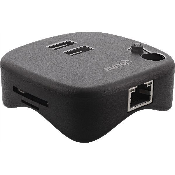 Produktinformationen "InLine® USB 3.0 Multiadapter, 2xUSB-A, RJ45, SD/MicroSD Cardreader, schwarz 35392"