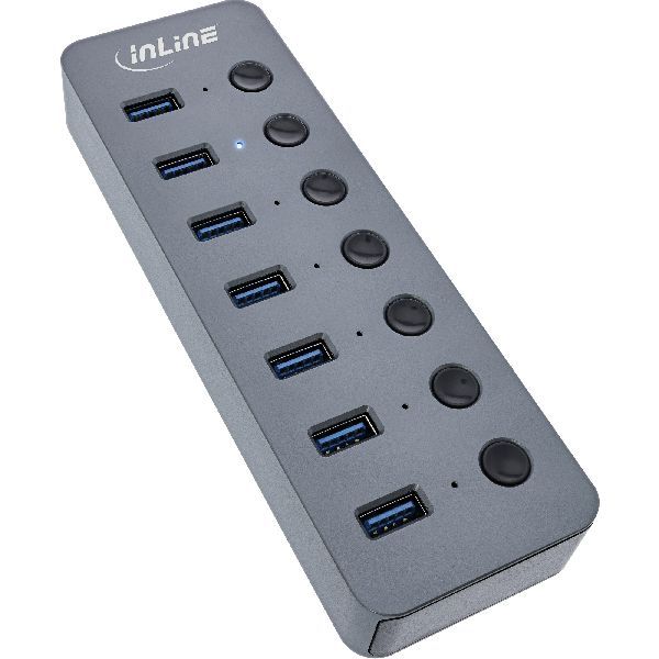 Weiterführende Links zu "InLine® USB 3.2 Gen.1, 7-Port, mit Schalter, Aluminium, grau, mit Netzteil 35395D"
