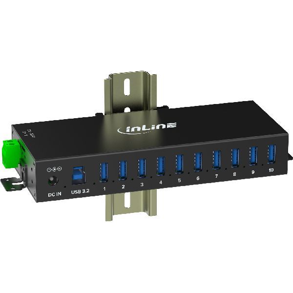 – 1x InLine® USB 3.2 Gen.1 Industrie-Hub, 10 Port, Aluminiumgehäuse, mit Netzteil