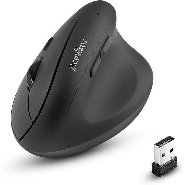 Die Perixx PERIMICE-608II ist eine kabellose vertikale Maus für Rechtshänder, die für den täglichen Gebrauch am Computer entwickelt wurde. Sie wird über einen 2,4-GHz-USB-Empfänger angeschlossen und bietet eine stabile Plug-and-Play-Einrichtung. Mit ihren sechs Funktionstasten, einschließlich Vorwärts- und Rückwärtstasten, ermöglicht sie eine bequeme Navigation. Mit dem DPI-Schalter können Sie die Empfindlichkeit zwischen 800, 1200, 1600 und 2400 DPI für eine präzise Steuerung einstellen. Sie ist kompakt und leicht (93 g) und verfügt über ein robustes ABS-Gehäuse, das für bis zu 3 Millionen Klicks ausgelegt ist. Die Maus wird mit einer AA-Batterie betrieben (nicht im Lieferumfang enthalten) und ist mit Windows 7 oder höher kompatibel.