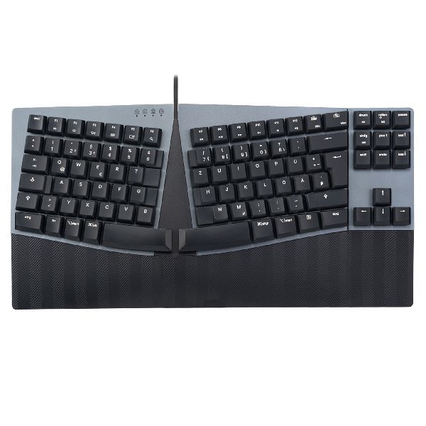 - Ergonomisches Design: Eine mechanische Tastatur mit geteiltem Tastenrahmen und gebogenem Design fördert eine bessere Körperhaltung, indem sie Handgelenk und Arme in die natürlichste Tipphaltung bringt.