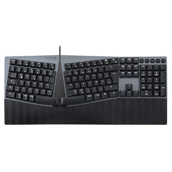 - Ergonomisches Design: Eine mechanische Tastatur mit geteiltem Tastenrahmen und gebogenem Design fördert eine bessere Körperhaltung, indem sie Handgelenk und Arme in die natürlichste Tipphaltung bringt.