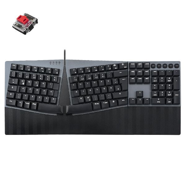 Weiterführende Links zu "Perixx PERIBOARD-535 DE RD, ergonomische mechanische USB Tastatur (rote Taster) 57156F"