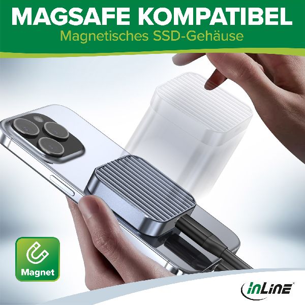 Das InLine® Clip Case bietet eine professionelle Lösung zur mobilen Speichererweiterung – kompakt, leistungsstark und zuverlässig im täglichen Einsatz. Perfekt für die Content-Erstellung im Feld (z. B. Drohnenaufnahme direkt auf der SSD sichern), Serviceeinsätze und Datenmigration (z. B. schneller Zugriff auf Systemdaten, Backups oder Installationsdateien) und Medienproduktionen (z. B. große Dateien bearbeiten und sichern ohne internen Speicher zu blockieren).