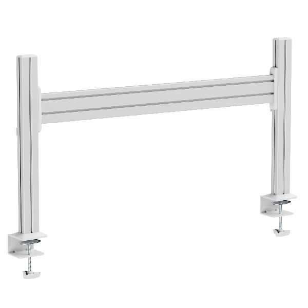 Durch das Klemmprinzip lässt sich die Halterung schnell und werkzeuglos montieren. So bleibt die Tischoberfläche unbeschädigt, während das Aluminiumprofil sicheren Halt und eine elegante Optik bietet. Die beidseitige Nutzung macht die Lösung besonders interessant für Doppelarbeitsplätze oder Team-Workstations.