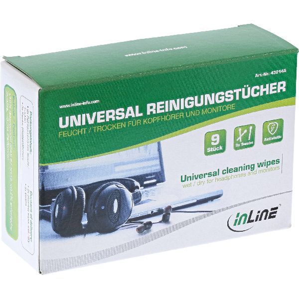 Produktinformationen "InLine® Universal Reinigungstücher nass/trocken für Kopfhörer und Monitore 43214A"