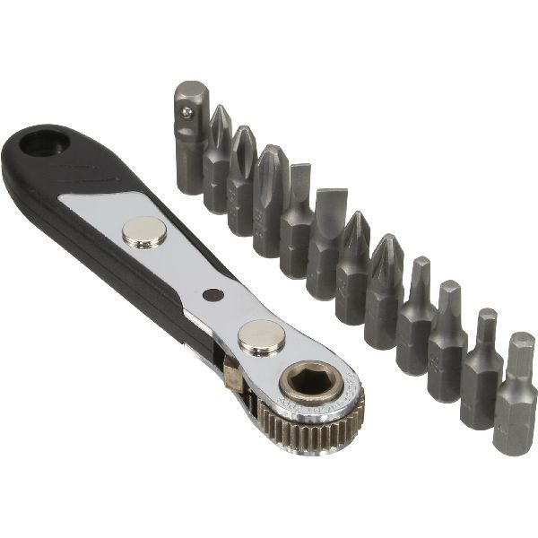 Das Mini-Ratschen-Set mit 12-teiligem Bitsatz, ist dank der cleveren Verpackung ideal für den Transport im Auto, beim Camping etc. aber auch zu Hause zu verwenden.